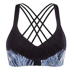 Attractive and stylish printed sports gym bra with elastic chest band provides secure and locked-in feel.